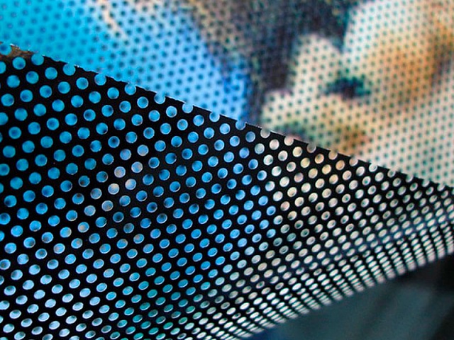 Перфорированная пленка широко используется в рекламной индустрии, особенно для наклеивания на витрины магазинов и сооружения, закрываемые баннерами во время реставрации. Внешняя сторона пленки белая, предназначена для нанесения изображения, а внутренняя — черная, что позволяет создать эффект затемнения, если пленка используется для автомобильных стекол.