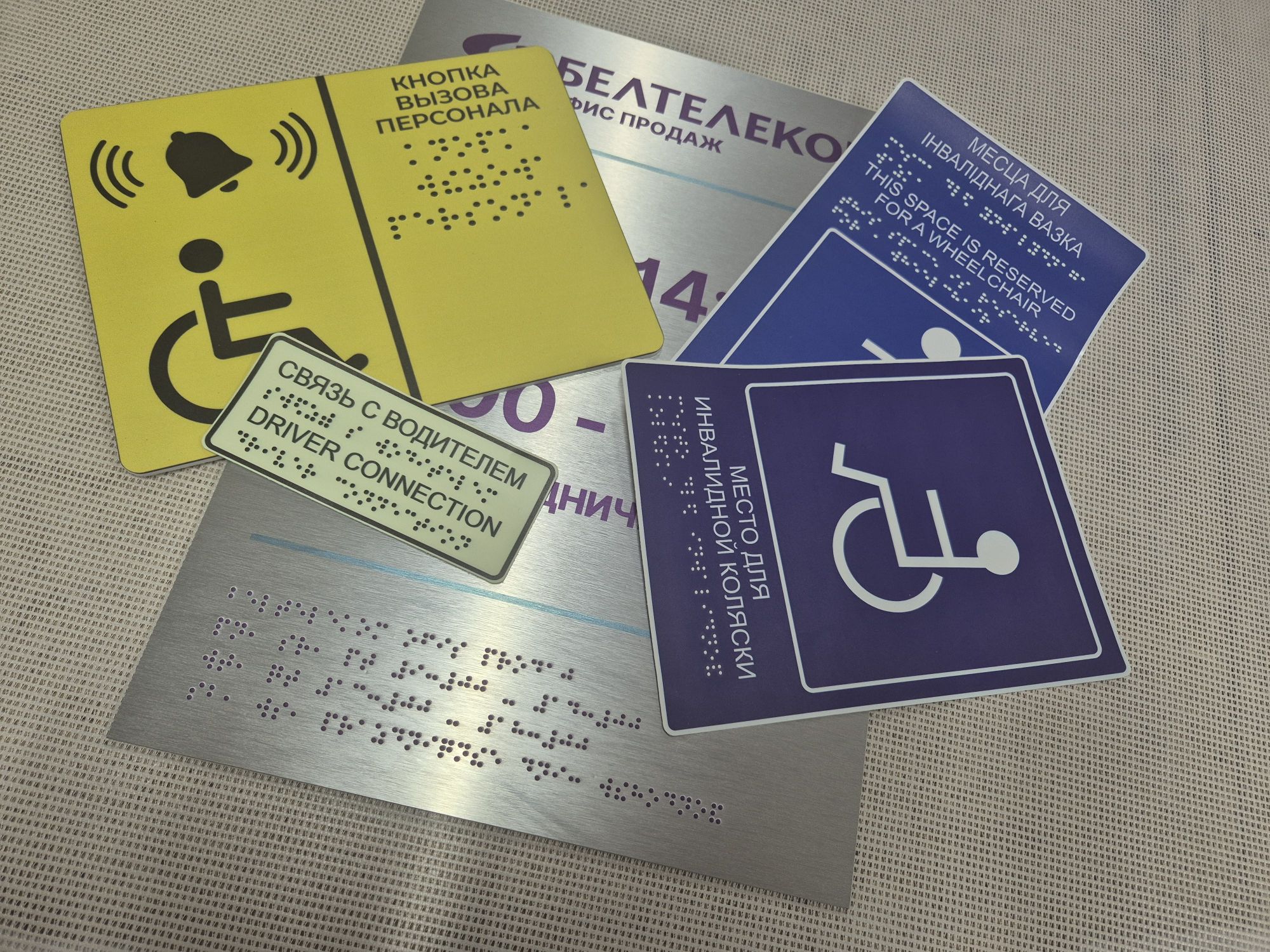 Шрифт Брайля — рельефно-точечный тактильный шрифт, предназначенный для письма и чтения незрячими и плохо видящим людям. Печать шрифтом Брайля дает им возможность получения информации об окружающем пространстве (схемы, таблички, указатели). ООО "Макропринт" предлагает Вам печать Брайлем с помощью уф-печати на пластике, самоклеящейся пленке и др., в том числе и на Ваших (давальческих) материалах. Ультрафиолетовая печать позволяет создавать изображения, устойчивые к истиранию, воздействию света, влажности и другим факторам внешней среды.